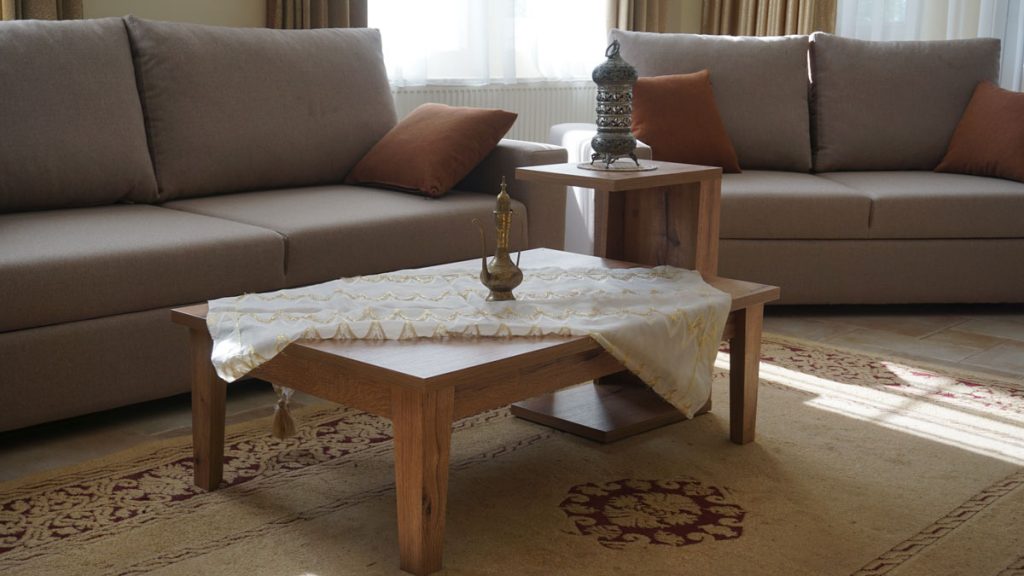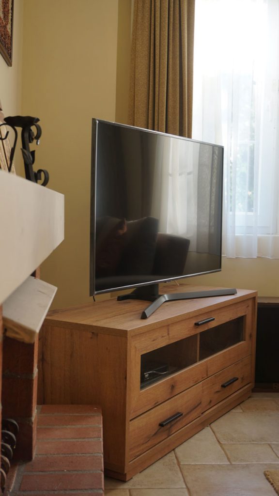 A large, inviting area perfect for evening movies or family dinners. It blends traditional Mediterranean architecture with cozy, comfortable seating.